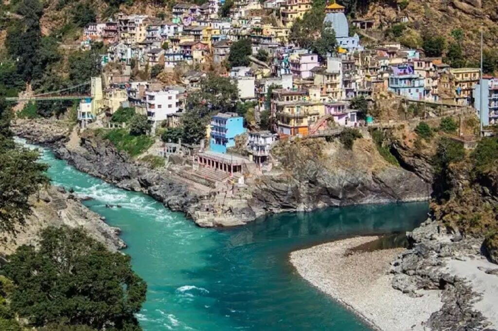 Devprayag Sangam is a beautiful and peaceful spot where the Bhagirathi and Alaknanda rivers meet and then flow on as the Ganges River.
